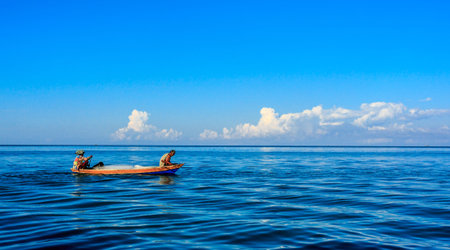 Semporna, Sabah, Malaysia - 26 April 2020 - Sea gypsies on a boat