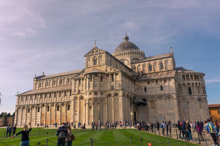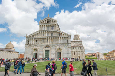 Pisa, Italy - October 19, 2015 : Crowd of tourists visit Pisa Cathedral and Leaning Tower of Pisa on October 19, 2015.