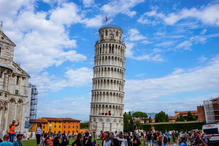 Pisa, Italy - April 30: People at the venue of Leaing Tower of Pisa, on April 30 2018 in Pisa, Italy