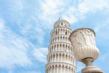 Pisa Italy - April 23 2011; Ornamental urn near base of famous Leaning Tower of Pisa