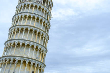 Leaning tower of Pisa against cloudy sky . Tuscany, Italy