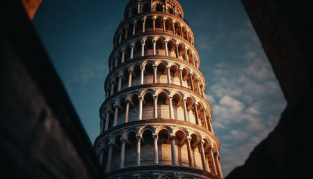 The leaning arch symbolizes the spirituality of ancient Italian culture generated by artificial intelligence