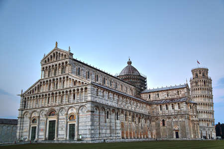Sunset view of Pisa Cathedral (Duomo di Pisa) with the Leaning Tower of Pisa (Torre di Pisa) on Piazza dei Miracoli in Pisa, Tuscany, Italy