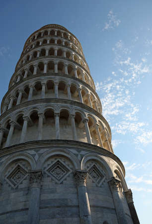 Famous Leaning Tower of Pisa with bluwe sky and more clouds in Tuscany Italy