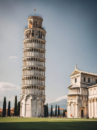 Pisa, Italy - March 18, 2023: View of the Pisa Cathedral and the Leaning Tower in a sunny day in Pisa, Italy. High quality photo