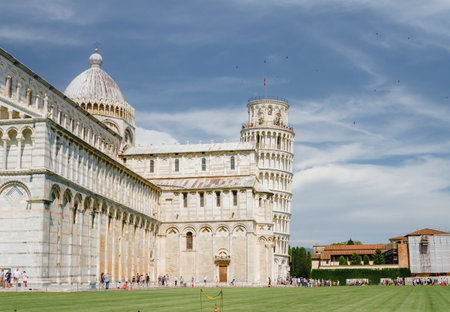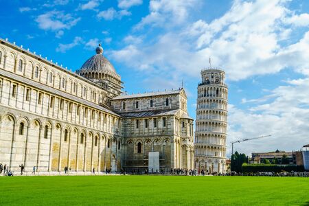 PISA, ITALY - JULY 22, 2017: Leaning tower and Pisa cathedral in a summer day in Pisa, Italy in a beautiful summer day