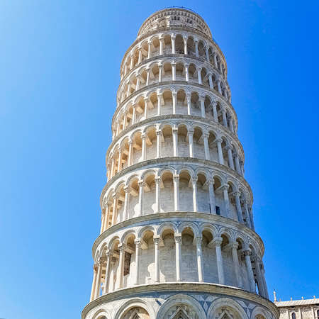 Photo of the famous leaning Tower of Pisa in Field of Miracles, Tuscany, Italy
