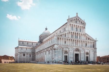 PISA , ITALY - SEPTEMBER 21, 2015 : View of historical old Pisa Cathedral in Cathedral Square in Pisa, Italy, on cloudy blue sky background.