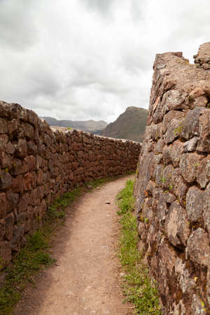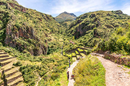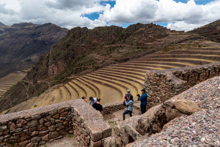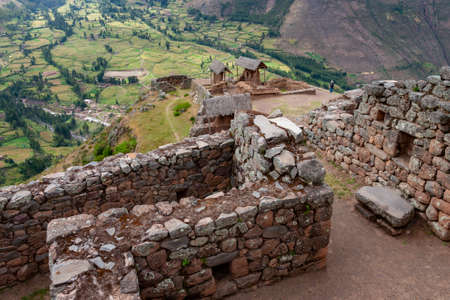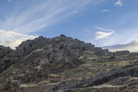 Pisac, Peru - April 4, 2014: Archaeological Park of Pisac, ruins and constructions of the ancient Inca city, near the Vilcanota river valley, Peru.