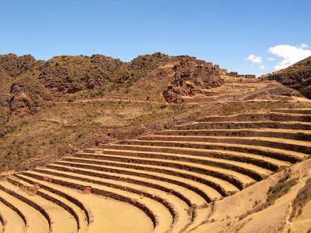 Ancient Inca circular terraces in Sacred Urubamba Valley of Incas, Peru