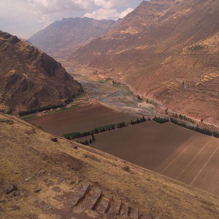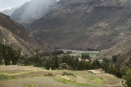 A beautiful Peruvian landscape on an overcast day in the Calca Province.