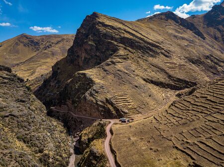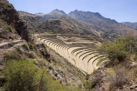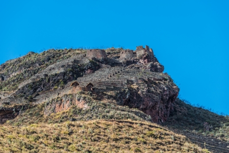Old Inca buit terraces near the ruins of Pisac, in the Sacred Valley, Peru