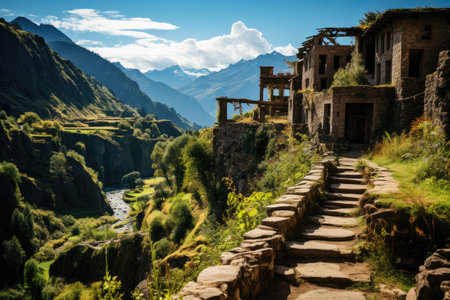 Majestic Sacred Valley of the Incas with archaeological sites., generative AI