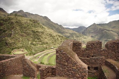 The Inca ruins of Qantus Raqay in the Sacred Valley of the Incas in Peru, South America.