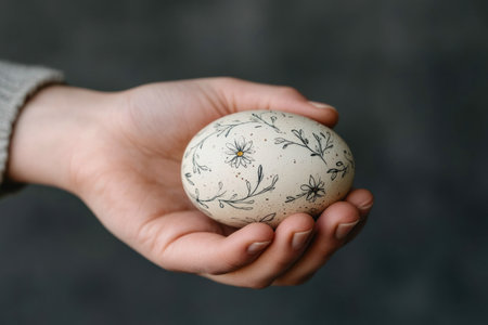 Hand Holding Floral Easter Egg for Spring Holiday,