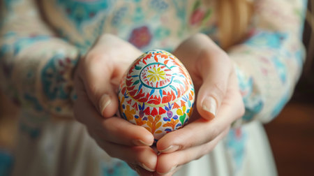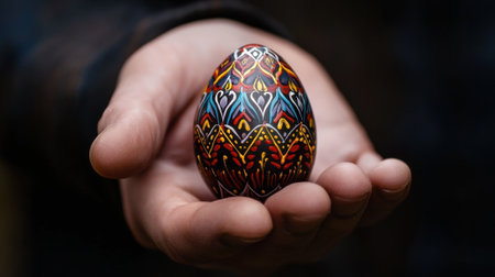 a person holding a decorated egg