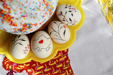 ukrainian traditiona - Easter cake and egg Pysanka on a white background