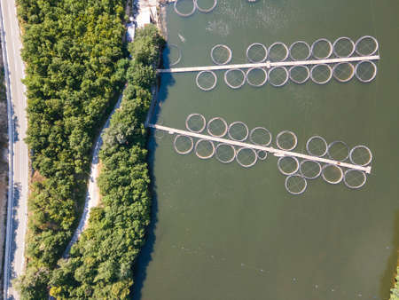 Aerial View of a Thriving Salmon Fish Farm in the River