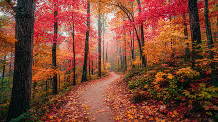 Autumn forest with colorful trees and path. Colorful autumn landscape.