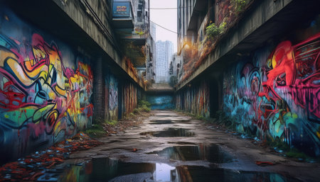 Colorful graffiti art covering the walls of an urban alleyway, representing street art and creativity