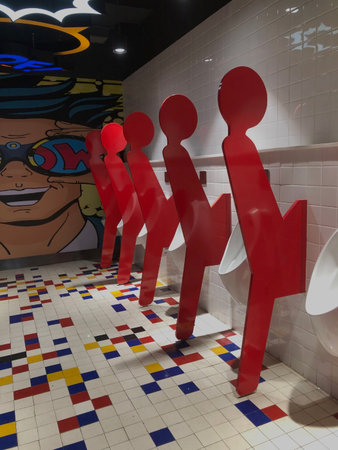 Public gentlemen toilet restroom. Interior and Healthcare concept. Hygiene in shopping mall theme