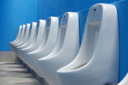 male potty in row in toilet of plumbling,side view,selective focus