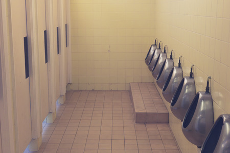 The toilet of man with toilet view by urinals , interior at the old toilet background
