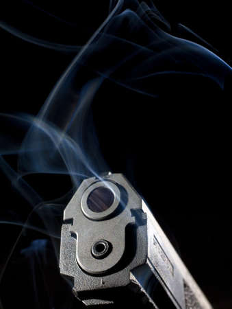 Handgun that has just delivered a shot with smoke around