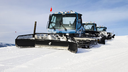 blue ratrak on the mountains winter ski resort