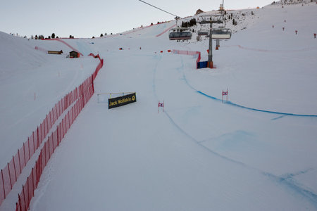 Val Gardena, Italy 19 December 2014. A general view during the Men's World cup Downhill Race on the Saslong Course in the dolomite mountain range.