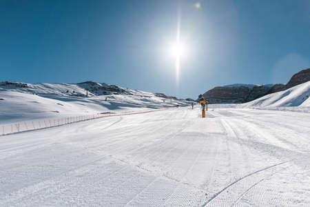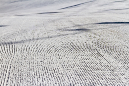 Snow on the prepared ski slopes sunny winter day