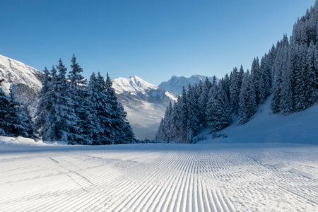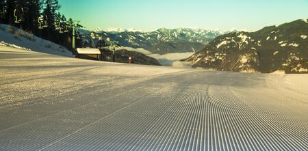 perfectly groomed empty ski piste