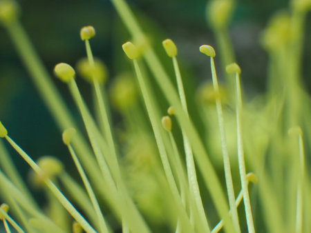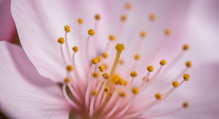 Extreme macro view of flower pistils in early summer morning