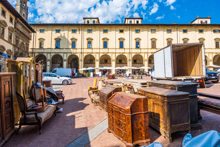 Arezzo, Tuscany - Italy, 2020 Jul: The Piazza Grande site of Giostra del Saracino and Antiques Fair