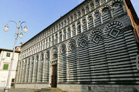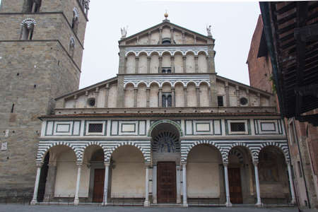 Exterior of historic cathedral of Pistoia, Tuscany, Italy