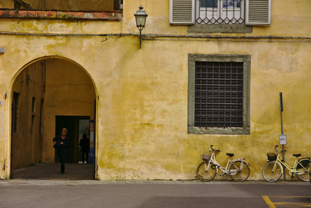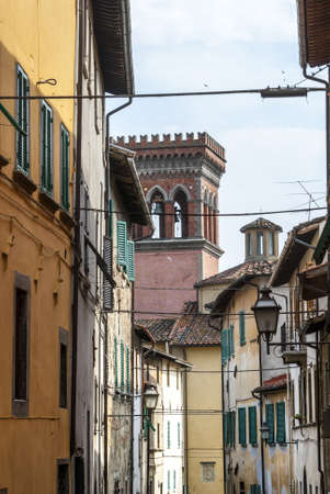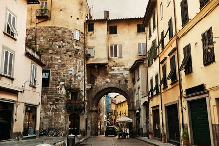 Narrow streets of Lucca ancient town with traditional architecture, Italy