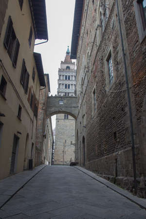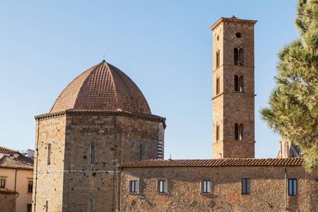 The Old town of Arezzo with the view of the steeple of the Church of Pieve