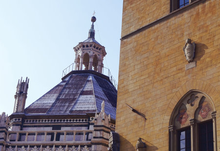 Detail of baptistery and Podest palace, Pistoia, Italy