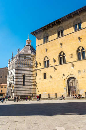 Pistoia, Italy, 18 April 2022: View of the Baptistery of Pistoia