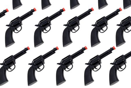 Black Toy hand guns with red tip isolated over white
