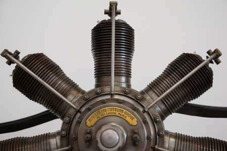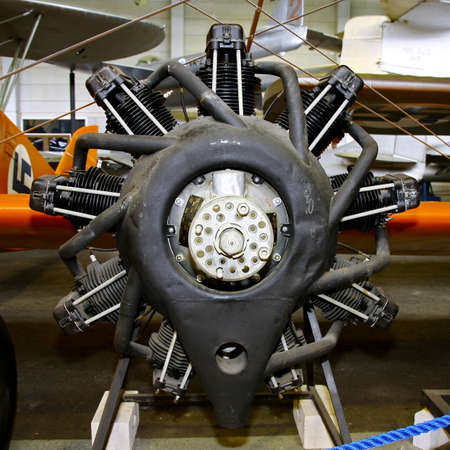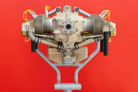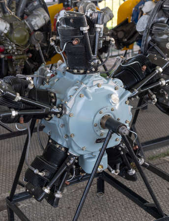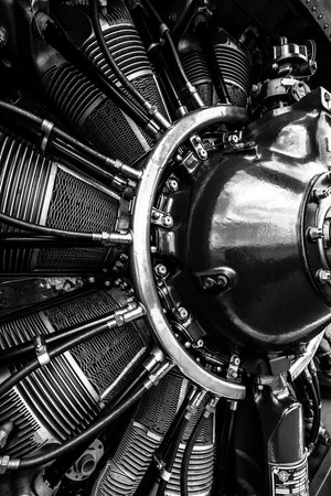 Aircraft Rotary Engine, Closeup Plane Aviation Piston Engines old grunge rusty.