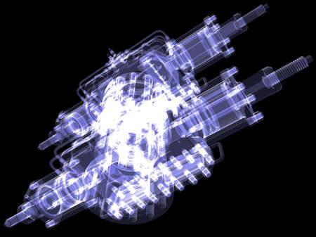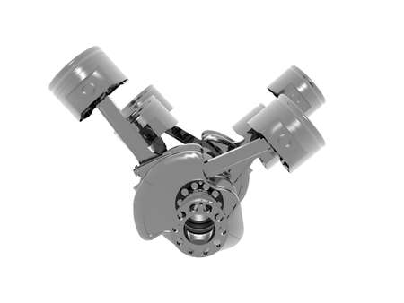 3d illustration of an internal combustion engine. Engine parts, crankshaft, pistons, fuel supply system. V6 engine pistons with crankshaft on a black background. Illustration of car engine inside.