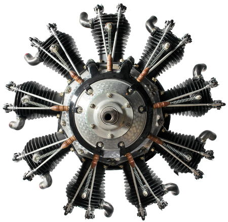 Closeup of Radial Engine Isolated Over White Background Horizontal Image