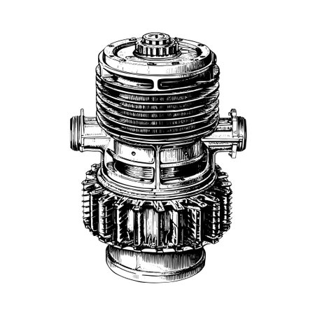 A close-up of polished metallic parts with intricate bolt arrangements and interconnected piping, showcasing advanced engineering craftsmanship and industrial innova