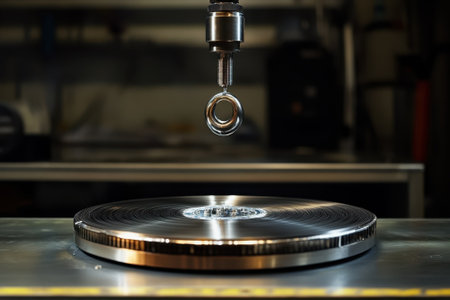 Intricate close-up of an industrial component showcasing metal finishes and precise engineering details, ideal for showcasing technology and manufacturing elements.