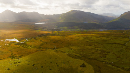 Beautiful landscape panorama of Snowdonia National Park in North Wales, UK