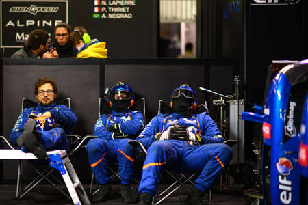 Le Mans / France - June 15-16 2019: 24 hours of Le Mans, Signatech Alpine Matmut Team , Alpine A470 LMP2 In the stands for maintenance operations, Race of the 24 hours of Le Mans - France