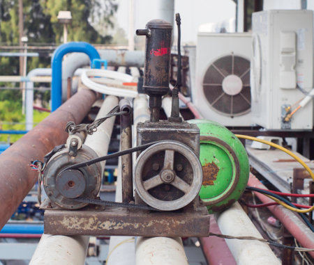 Atmospheric shot of corroded pipes and valves in a desolate industrial setting