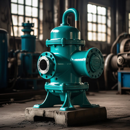 Water treatment plant water pump system. Valve and pumps in an industrial room.