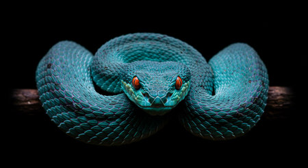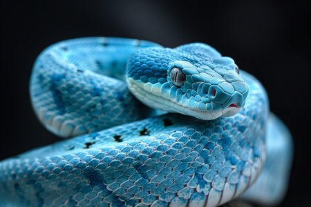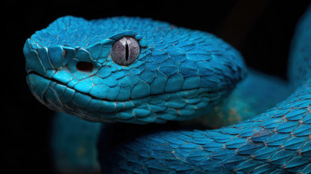 Blue Viper Snake Portrait Face Black Background Striking Reptile Wildlife